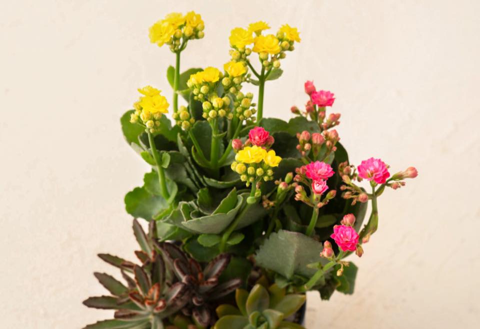 冬春季盛開的長壽花是景天科伽藍菜屬,葉形鋸齒狀、大而圓厚,一年四季常保翠綠,花瓣數量及型態多元,因會開出紅、粉、黃、橙或各色相間的花,而且從開花花期約 1 個月,年前做為裝飾,可盡情欣賞其植株變化至年後。