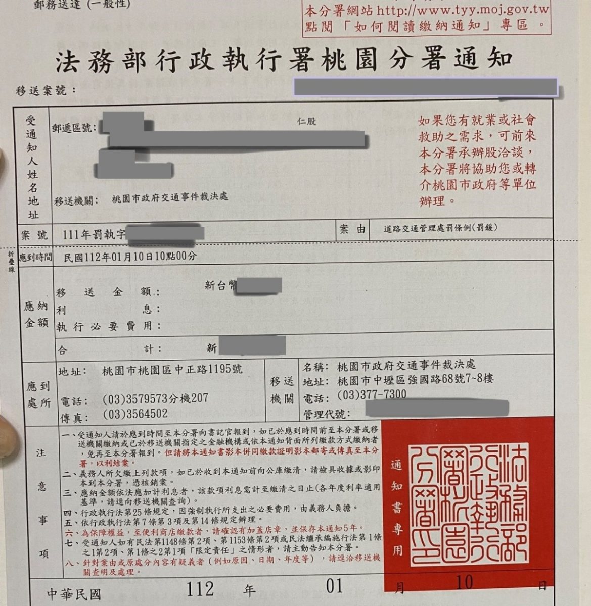 桃園市觀音區一名26歲呂姓男子,去(111)年4月間遭桃園市交通事件裁決處以10年內酒精超標2次與無照駕駛,處12萬元罰鍰,呂男逾期未繳,遭移送法務部行政執行署桃園分署執行。桃園分署收案後立即通知呂男繳納,呂男擔心財產所得遭強制執行,於收到通知後,立即繳清欠款。