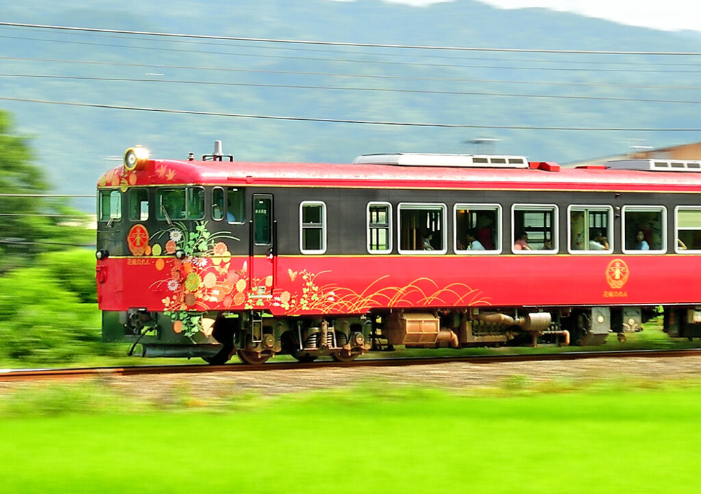 金澤、和倉皆屬立山黑部周邊地區,可樂旅遊「花嫁暖簾列車」系列遊程結合日本文化觀光鐵道,列車以花嫁為主題,車身正紅色彩和花卉搭配,車廂內部則以金澤的傳統工藝「輪島塗」及加賀的「友禪」染為設計概念,搭配各種花色、蝴蝶,洋溢喜慶愉快氛圍。從金澤站出發,特別為參團旅客準備精緻下午茶點心,一邊感受幸福一邊品茗茶點。