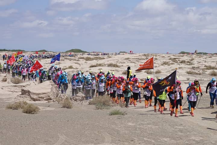 再看看參賽者的資格限制 ── 就讀於或畢業於商學院 EMBA 的華人學生,這群「學生」年紀可都不小,以我參加的 2016 年「台大戈十一EMBA 挑戰隊」的平均年齡而言是四十六歲,就讀 EMBA 者多為在職的企業主和高階經理人,在事業上或許小有成就,但論體能就不一定了,這群大多沒有運動習慣的中年社會人士挑戰戈壁,是人生中前所未有的嘗試和考驗,也許因為征戰職場多年的他們體內本有勇於冒險犯難的基因,或,某種不怕患難、總想走出舒適圈試試的闖蕩精神,每年勇赴大漠挑戰自我的人還真不少, 2016 年的戈十一當年總共有五十一所學校組隊、兩千五百餘人參加,賽事舉辦前十五年來統計已有七十三所商學院,一百零五支參賽隊伍,近兩萬人參加,而受到新冠疫情影響的戈十六,仍有超過六十所院校的近百支隊伍,近四千五百人參加。