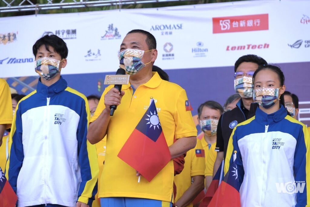 今天在新北市市民廣場舉辦升國旗迎聖火活動,也特別邀請到東奧體操選手丁華恬、拳擊選手林郁婷,共同觀禮升國旗唱國歌,在此刻傳遞堅持奮戰的精神,更感謝他們在國際最高運動殿堂奧運場上為國爭光。