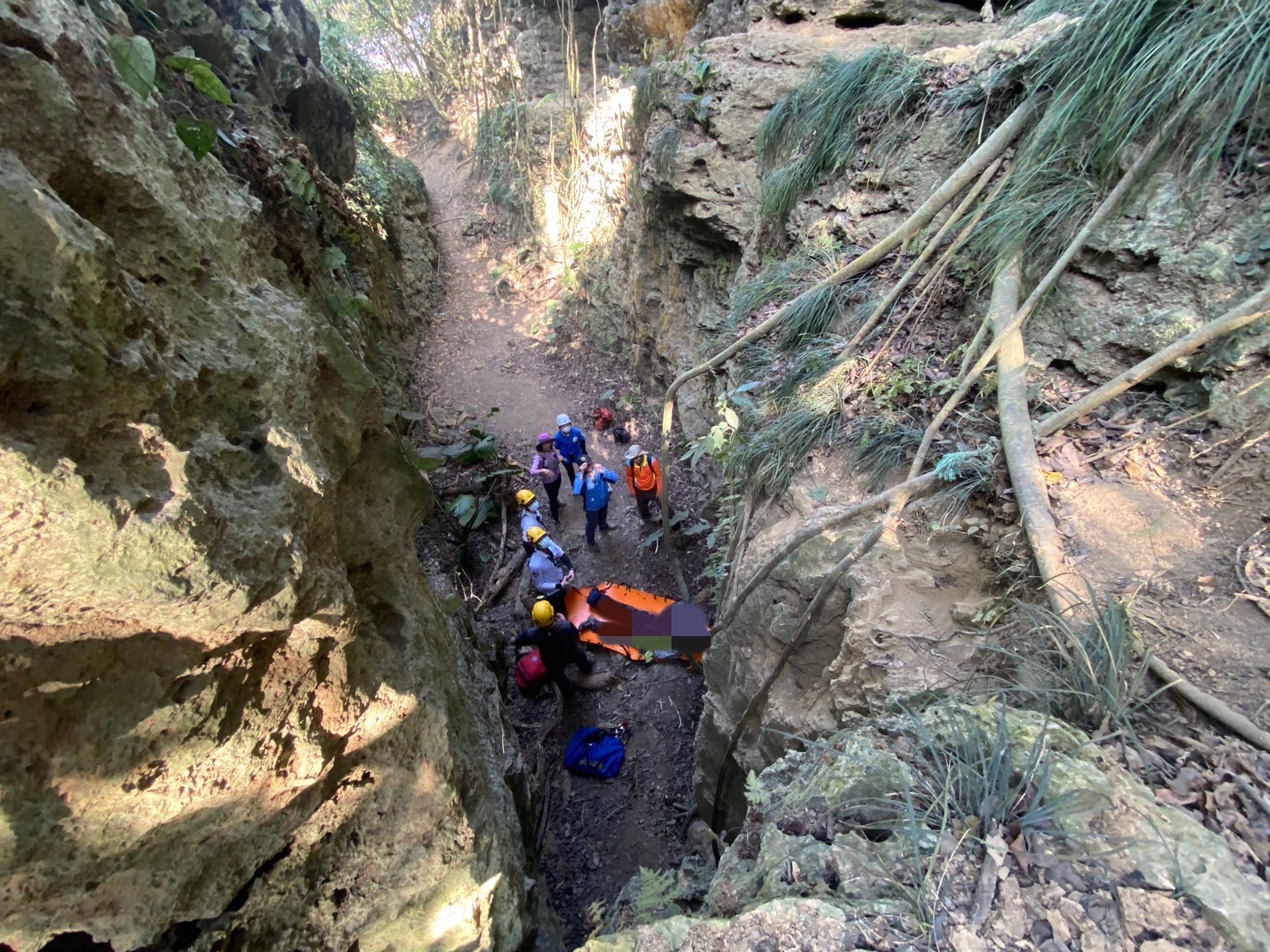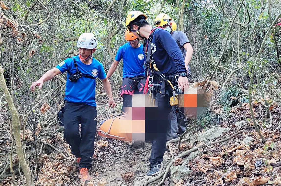 ▲高雄市柴壽山17日發生1起意外事件,警消人員與民間搜救隊中華戶外探險協會雲豹工作隊搜救人員一同前往現場救援。