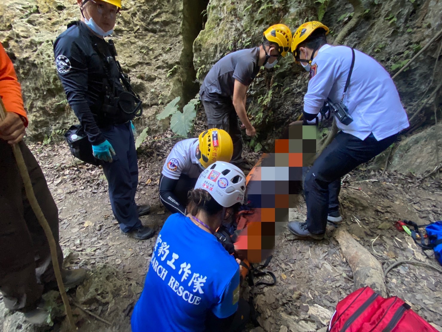 (觀傳媒高雄新聞)【記者宋德威、陳佩琪/高雄報導】高雄市柴壽山17日發生一起意外事件,一位資深山友自峭壁跌落腳部受傷,事故現場同行友人見狀紛紛報案;警消人員與民間搜救隊獲報後立即徒步上山救援。由於山區現場搬運不易加上傷者體重不輕,救難人員運用繩索確保協力托掛,運用SKED軟式擔架,經4小時一同協力將患者抬下山送醫急救。