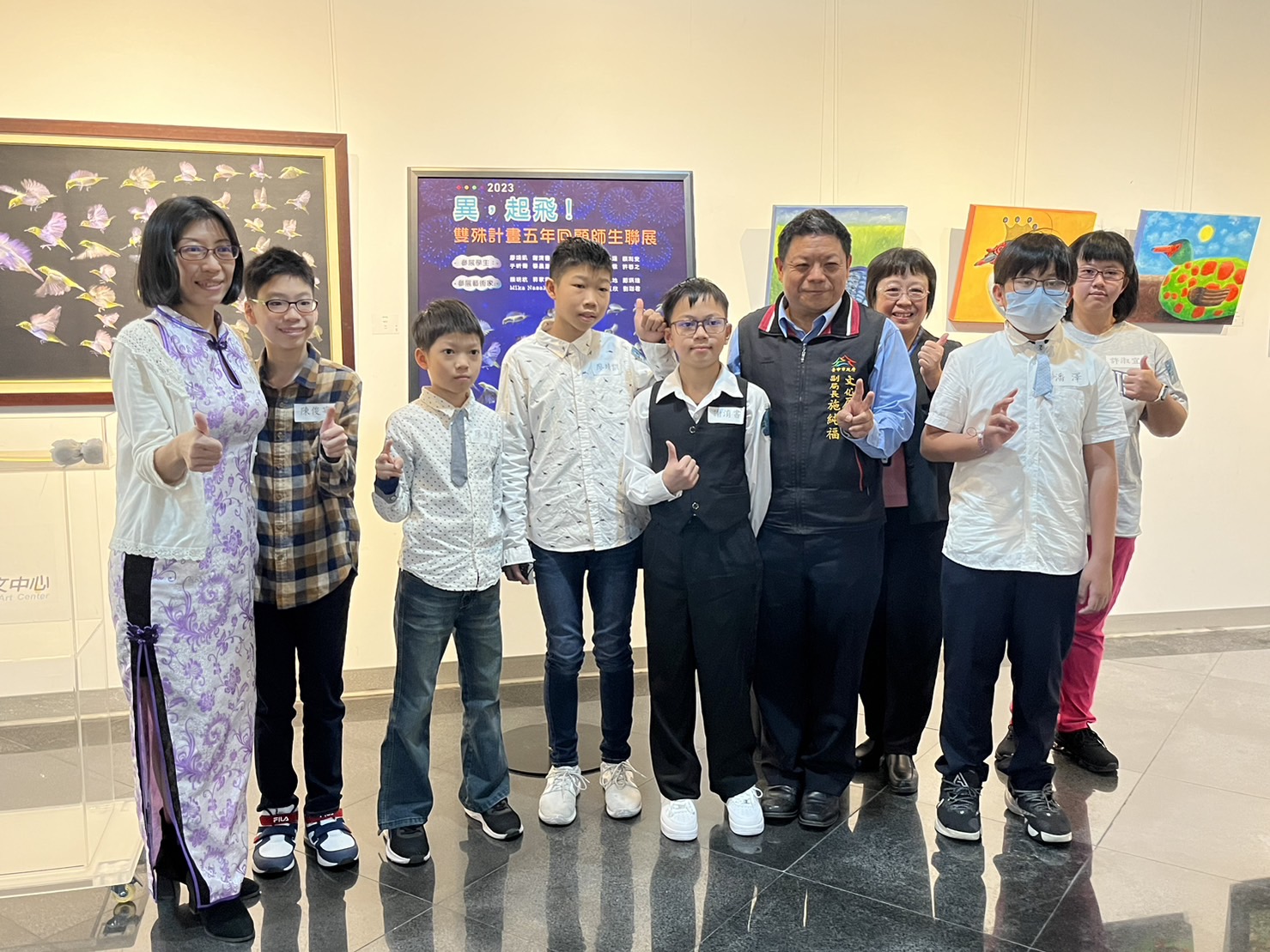 「異,起飛!」師生聯展登場展現,雙殊學生藝術天賦 文化局副局長施純福表示,「異,起飛 !雙殊學生美術增能資源方案實驗計畫」呼應聯合國永續發展目標SDGs倡導優質教育理念,自108 年舉辦迄今5年,為結合特殊教育與藝術家的跨領域合作,每年舉辦成果巡迴畫展,本次除了展出108至112年歷屆學生作品,更與任課的藝術家聯合展出師生作品,期盼除了讓孩子們的藝術資優天賦被看見,也建立他們的自信心及自我認同。