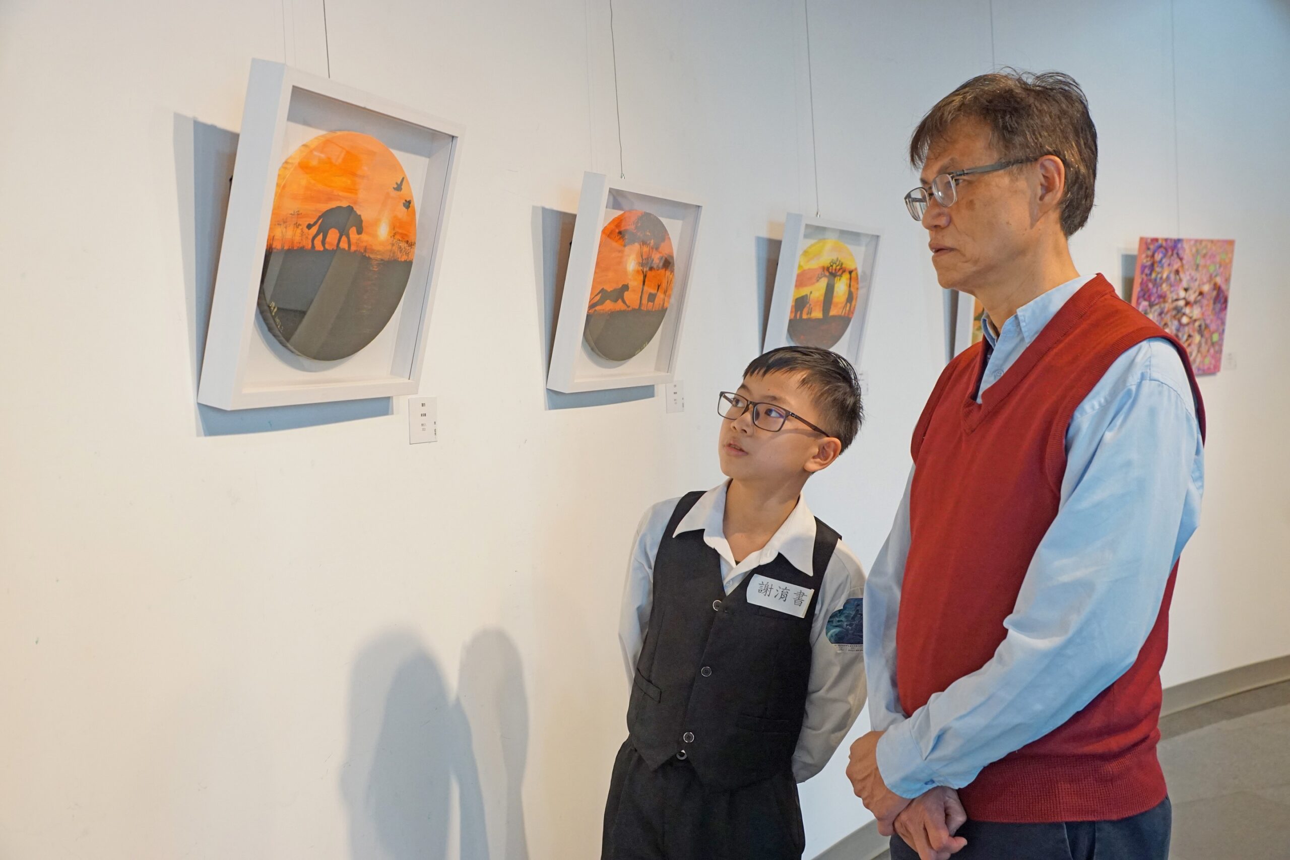 展出學生謝淯書導覽作品《獵豹》 今日開幕式臺中市政府文化局副局長施純福、立法委員何欣純、立法委員張廖萬堅、議員林祈峰服務處助理施育倫、教育局局長蔣偉民、國防部後備指揮部指揮官中將傅正誠、教育部國教署組長蔡志明、成功國中校長蔡政忠、光明國中校長胡金枝、居仁國中校長徐吉春、頭家國小校長周文杰、中教大附小校長楊家慶、中教大特教系教授王欣宜、太平區太平里里長林龍洲、華科基金會主任王榮廉、總統教育奬審查委員黃乃輝、市政顧問謝榮浤、實小榮譽會長謝志彥前來共襄盛舉。