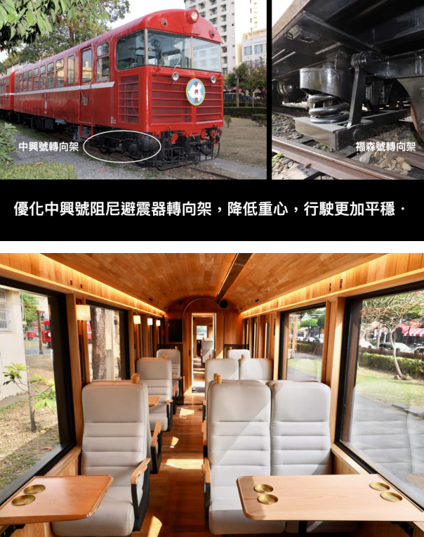 圖三:新造車廂配合優化中興號阻尼避震器轉向架,保留阻尼,降低重心,行駛更加平穩,大幅提升舒適性。