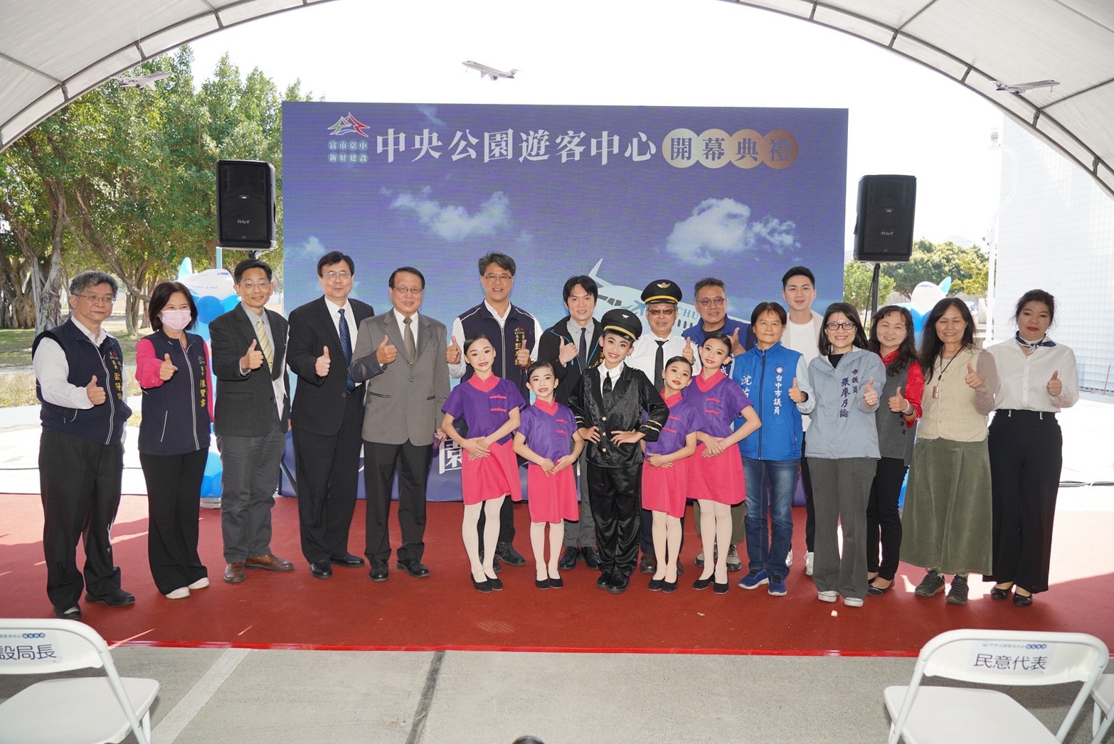 台中市建設局長陳大田表示,有別於一般的遊客中心,中央公園不只有導覽諮詢服務功能,台灣民眾只要一進入中央公園遊客中心,就可馬上感受到滿滿的出國氛圍,不論是航廈大廳、播音情境、出境報到櫃台…等,每個角落都是打卡景點,更是一個舒適優質的休憩空間。