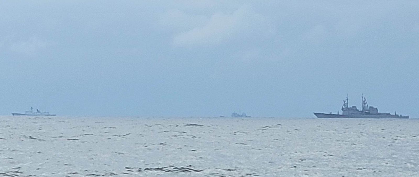 《菱傳媒》獨家取得台美軍艦協防包夾共軍054A型飛彈護衛艦「515濱州號」的畫面,只見美國軍艦在前方,我紀德級飛彈驅逐艦緊跟在後,兩軍艦緊緊監控前方中共軍艦動態。