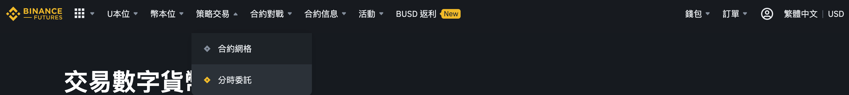 1.前往幣安合約市場,並在「策略交易」選單中選取「分時委託」。
