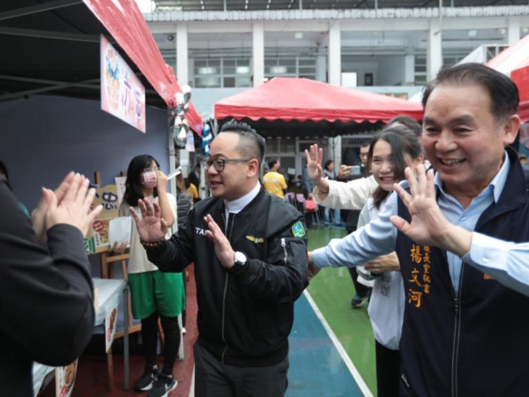 ▲議長體驗校慶活動,引起學生好奇想一起遊玩。(圖╱市議會提供)