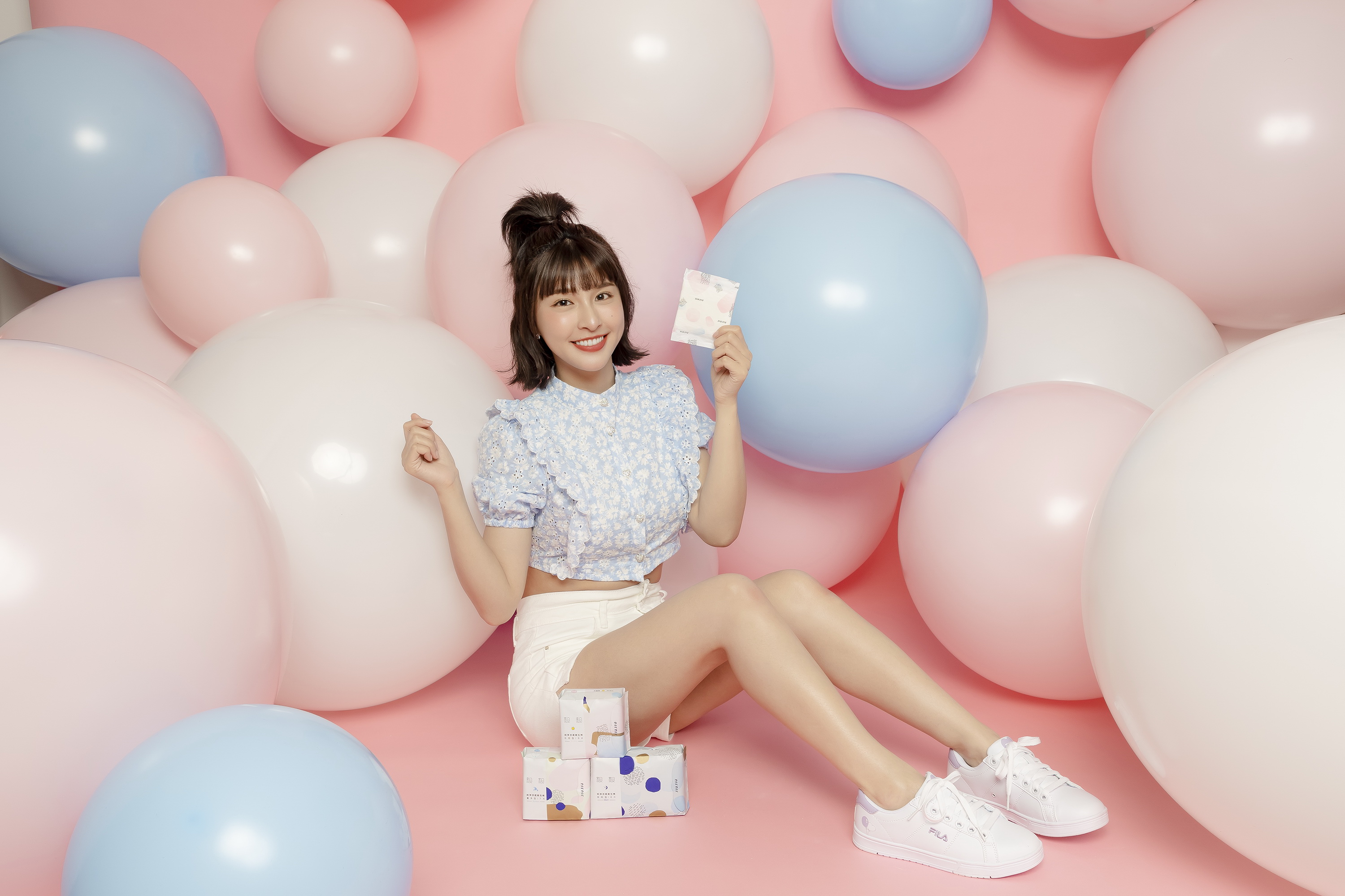 圖說:總是給人活力十足感覺的峮峮,選擇衛生棉最在乎是親膚、涼感、超強吸力,「親親JIU JIU衛生棉」完全符合。