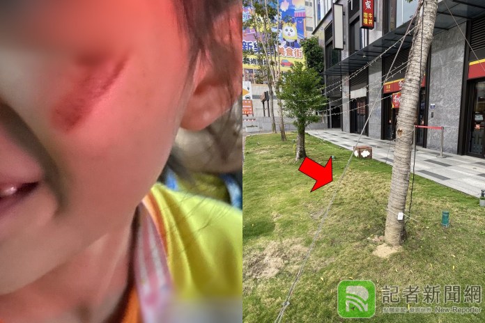 【記者新聞網/台中報導】台中1名9歲女童,跟著阿嬤到大里區台中軟體園區遊玩,因為看到喜愛的餐廳,小朋友太興奮了,小跑步穿過人行道的草皮,結果被固定樹木的鋼索絆倒,還刮傷了臉部,差點毀容,家屬認為鋼索很不顯眼,要求改善,負責管理大樓的物業公司,事後趕快在鋼索上綑綁反光膠布,加強警示,避免再有人摔倒,發生意外。