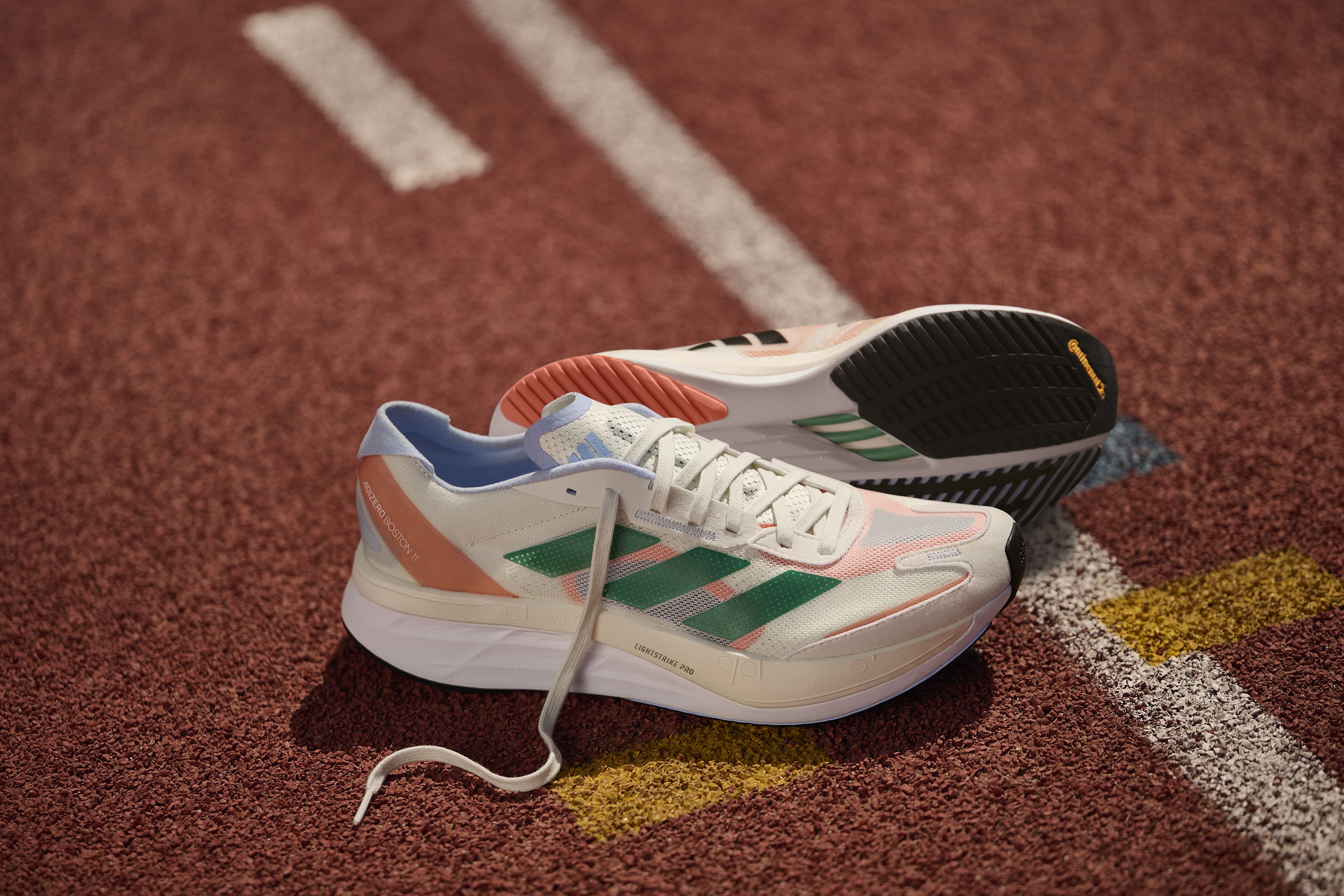 訓練,是為了比賽!專為中長距離訓練而生的 ADIZERO BOSTON 11,結合 LIGHTSTRIKE PRO 與 LIGHTSTRIKE 兩大中底科技,提供最佳緩震及舒適腳感,ENERGYRODS 爪型玻璃纖維強化推進力,讓訓練更具爆發力;搭配具包覆感的 LIGHTWEIGHT MESH 鞋面,讓跑者們安心備賽。ADIZERO BOSTON 11 全新配色以米白色為基底,以草地綠的經典三條紋為亮點,鞋後跟及鞋舌則以亮橘色及淺藍色呈現,外觀簡單卻又不失特色。