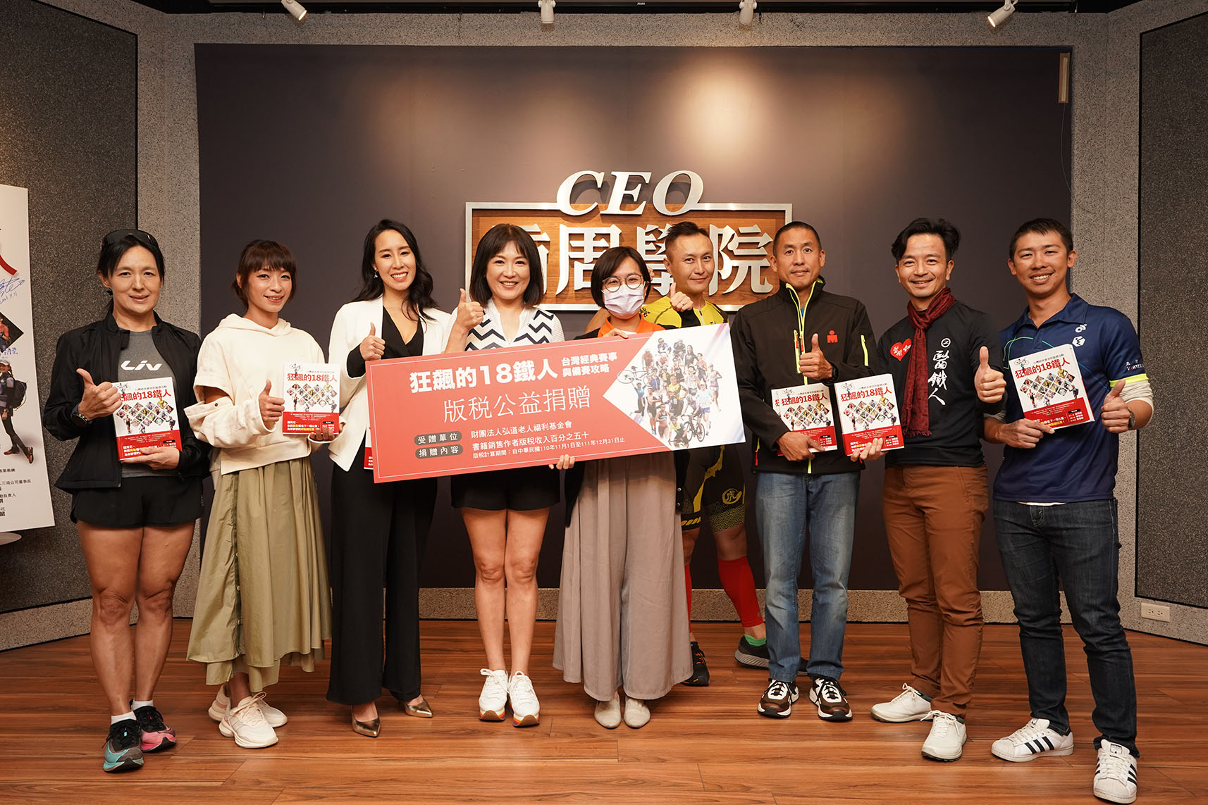 鐵人們不只對運動熱血,對社會更有滿滿的熱心。本書在起初撰稿階段時,作者群就已討論決議,將捐贈《狂飆的18鐵人》作者版稅收入的50%給財團法人弘道老人福利基金會,展現作者們滿溢的社會關懷與公益回饋。簽書分享會的捐贈儀式中,姚黛瑋作為作者捐贈代表,將這份暖心獻給弘道老人福利基金會代表 劉佳盈處長。