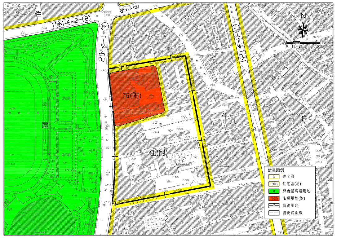 圖說:新莊高中二用地變更後主要計畫示意圖,除解編為住宅區,另規劃0.56公頃市場用地,後續將由市場處打造現代化零售市場,並引進多元公共設施。(圖/新北市城鄉局)