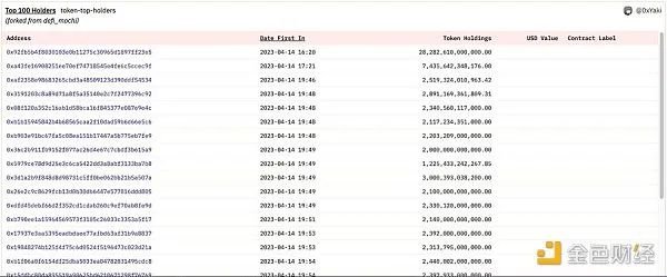 乍一看,似乎還沒有鯨魚錢包(以 0x92 開頭的地址 pepecexwallet.eth 是團隊錢包),但事實並非如此。