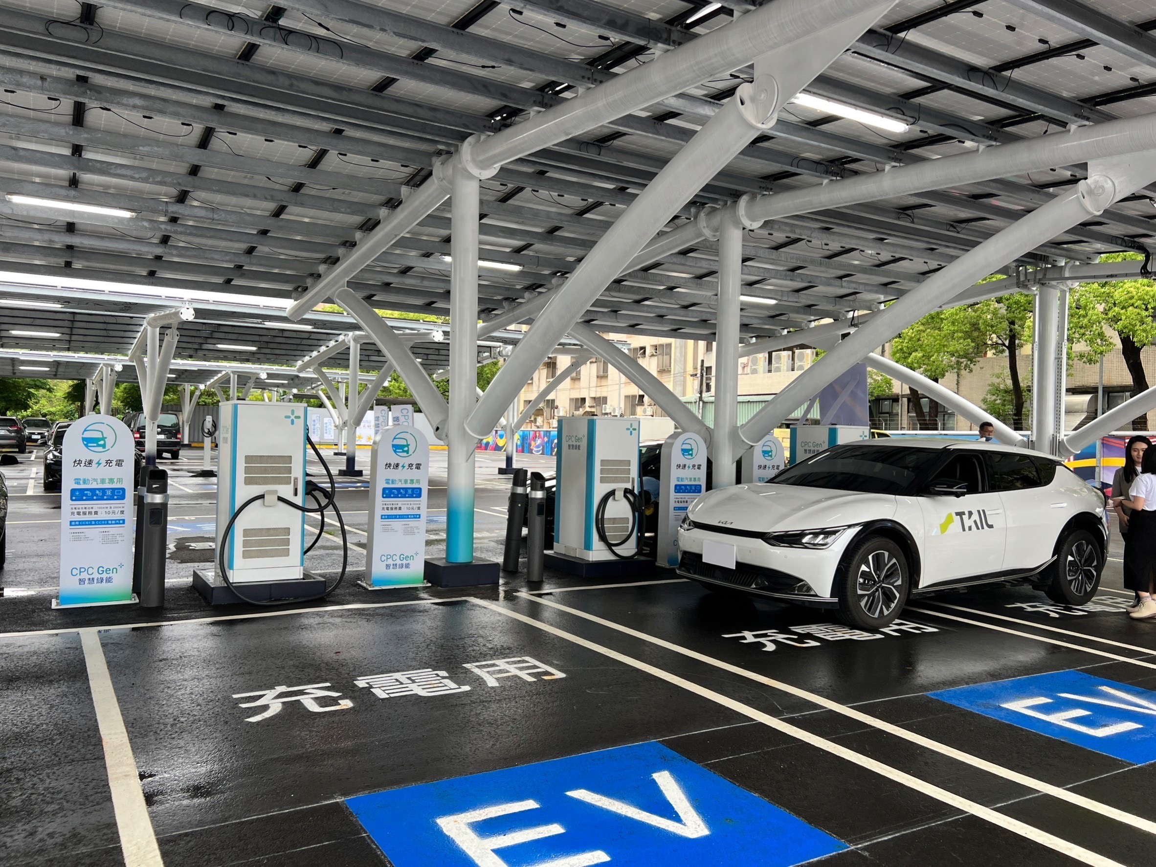 「新竹光明複合充電站」位於新竹光明加油站旁的停車場,以車牌辨識系統管理,另設置1座雙槍200kW及3座雙槍100kW快速充電樁(含美規CCS1及歐規CCS2共8槍),還有4座單槍7kW的慢速充電樁,同時滿足美規及歐規車型電動車充電需求。