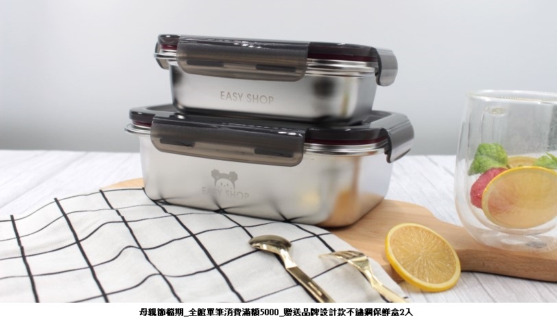 4/21-5/14母親節活動期間,EASY SHOP推出近百個款色內衣,期間限定指定商品買一送一,內衣款式豐富囊括:包括舒適無鋼圈款、性感集中款、側包穩定款、簡約素面休閒款、大罩杯包覆款…等,款款皆經典熱銷版型,滿足不同媽媽的內在美需求,活動期間「滿額折」,單筆消費正品滿2800現折200(買越多折越多,折扣最高達7折優惠)…;單筆消費「滿額贈」滿5000送品牌獨家設計款不鏽鋼保鮮盒2件組 (數量有限送完為止)。