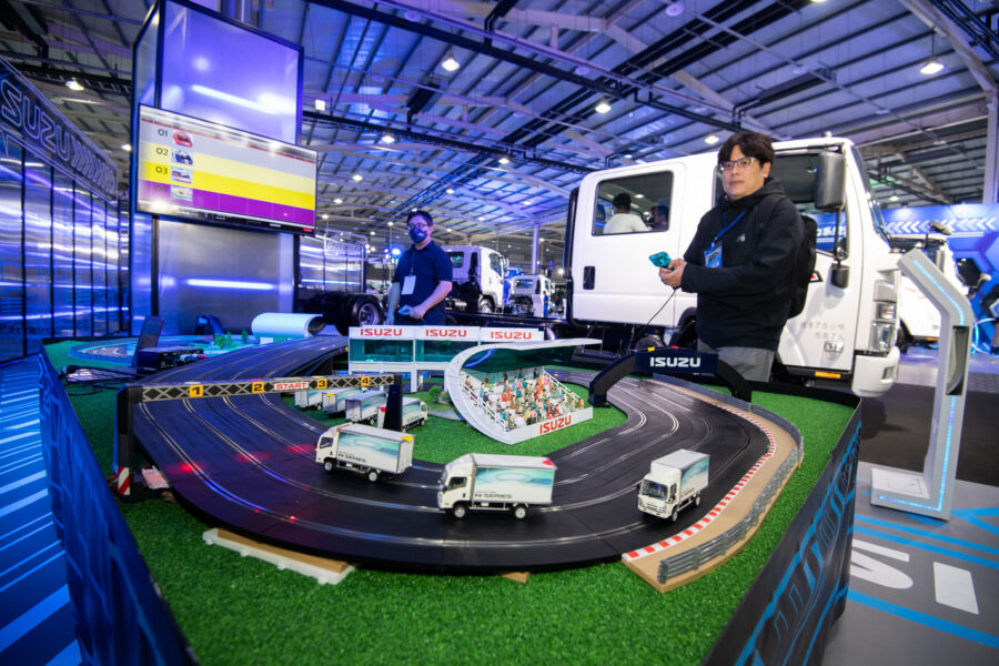 在安全功能演示區,透過地磚型LED螢幕呈現ISUZU獨家的ADAS雙鏡頭立體影像辨識系統與車輛安全功能,使駕駛朋友在面對台灣複雜多變的路況更加有保障。在互動遊戲體驗區,透過趣味的方式傳遞主動安全配備特性,包括賽道電刷車競賽、電流急急棒遊戲、超大氣球裝置,傳遞六期車款所搭載的LDWS車道偏移、ASR+IESC車輛穩定系統,以及F系列同級車唯一標配安全氣囊等特點。