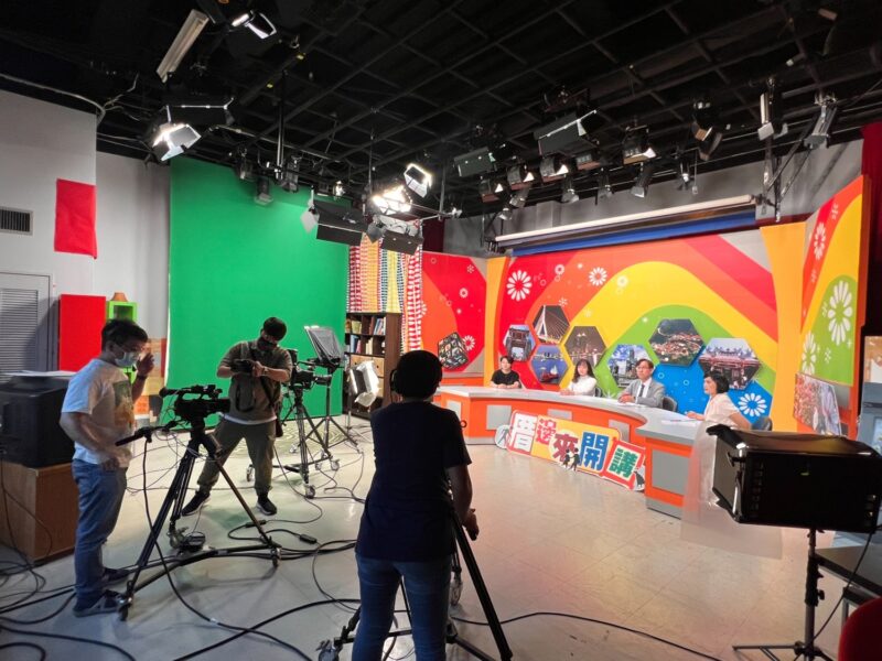 【今傳媒/記者李祖東報導】正修科大數位多媒體系112級畢業成果展即將登場,策展團隊今天由數位系主任殷聖楷帶隊接受鳳信有線電視「厝邊來開講」節目錄影,主要介紹畢業班同學如何透過動畫及遊戲創作展現其四年所學之成果;同時企業管理系廿多名學生實地參訪攝影棚內節目錄影過程,體會數位匯流的影響力。