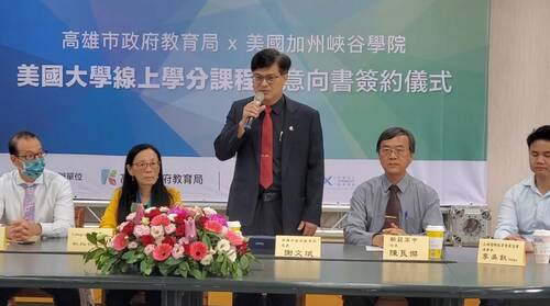 【漾新聞記者陳雯萍/高雄報導】高雄市教育局長謝文斌今天(4/27)代表高雄市高中職,與美國社區學院峽谷大學(College of the Canyons)簽約國際教育合作,由峽谷大學提供大一、大二200多門的通識課程,讓所屬公私立高中職學生選修。謝文斌表示,如此的合作模式,讓高雄學子在地國際化,深化雙語學習、擴展國際視野,同時降低學生赴美就讀大學修課的經濟負擔,共創國際教育全新里程碑。