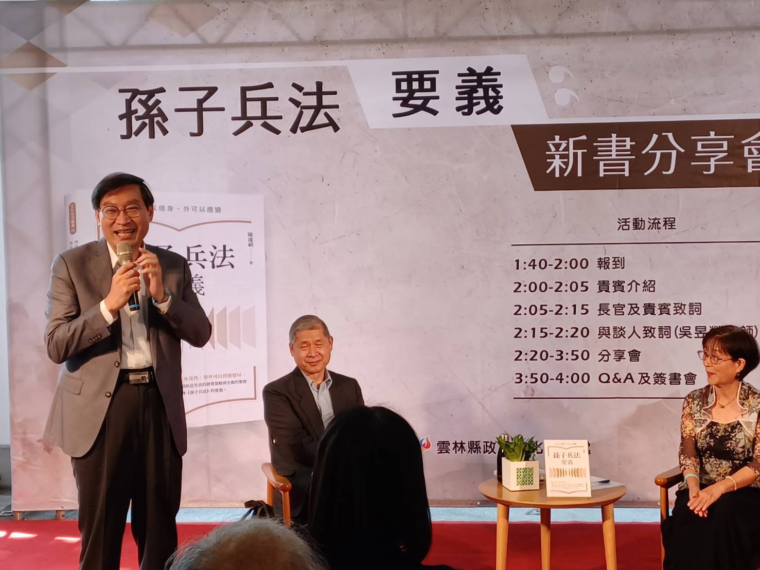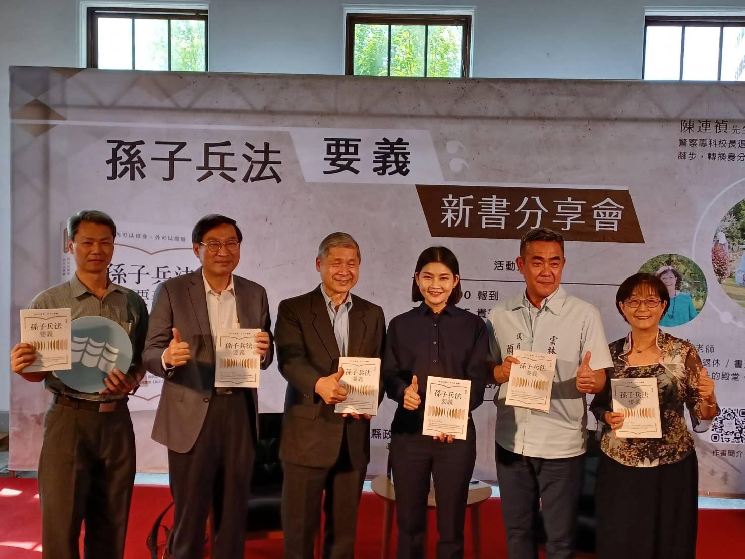 【記者 劉春生/雲林 報導】雲林縣政府文化觀光處四月二十七日下午兩點,在斗南分局舊辦公廳舍舉辦警專前校長陳連禎《孫子兵法要義》新書分享會,此書可以修身外也可以應變孫子兵法,陳連禎社長親自述說分享,由陳壁君處長主持,縣議員顏忠義、警察局長林故廷、斗南分局副分局長詹百平等人也到場共襄盛舉,現場也由此次的與談人吳昱瑩老師(斗六高中國文老師退休),陪伴大家一起導讀這本新書。