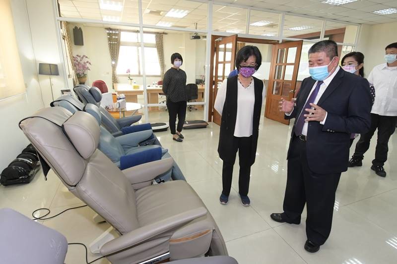 〔焦點時報/記者林明佑報導〕彰化縣長王惠美今(17)日上午由彰化縣工商投資策進會副總幹事陳穎青陪同下,前往秀水鄉參訪為全球三大專業按摩椅生產廠之一,光昱金屬有限公司,由董事長謝文旭等人導覽介紹公司發展現況。王惠美說,光昱金屬有限公司本身生產按摩機、律動機及非常多養生相關的機型,從過去的代工一直到現在品牌的打造,非常用心地在養生健康研發努力。