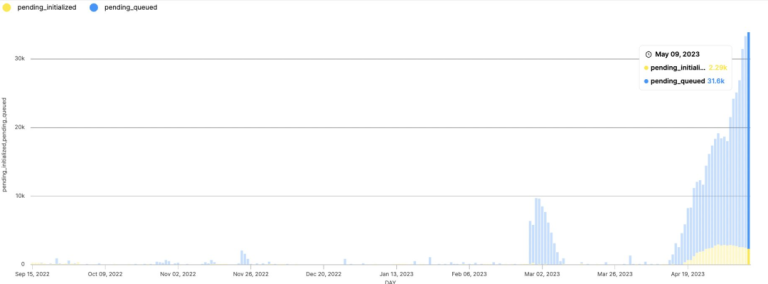 自 4 月 13 日上海升級以來,除了上海升級完前幾天淨流出嚴重一些,往後幾天甚至出現質押數超過提取數。目前,ETH 質押存款已超過提款,淨質押餘額約 43.5 萬枚 ETH。