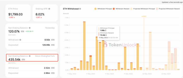 上海升級以來,以太坊淨提取數:代幣.unlocks