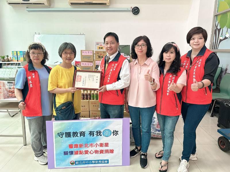 圖說:新北市中小學家長協會和三樹鶯區家協 於母親節捐贈物資和文具給5個小衛星據點。