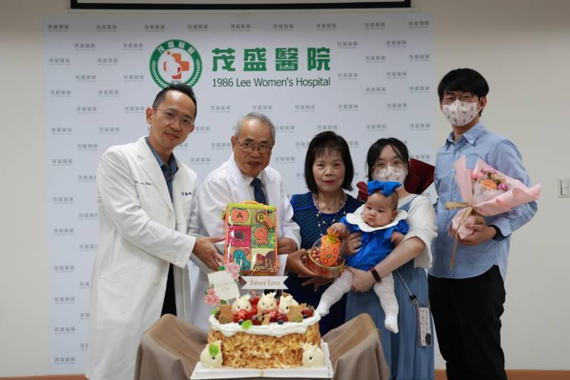 【大成報記者蕭宇廷/臺中報導】曾女士30多年前,因子宮中隔求助李茂盛醫院後自然產下大女兒;20多年前再接受人工授精生下二寶;她的大女兒去年則同樣到院求助、做第4代試管技術,在今年元旦也產下虎寶寶。時值感恩母親的溫馨5月,院長李茂盛12日特別邀請曾女士一家三代回院慶祝母親節,除送上康乃馨花束、並一起開心切蛋糕,為這難得的重逢留下珍貴合影。