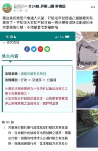里港警分局呼籲,山區道路蜿蜒,有部分路段路幅狹窄未劃分標線,請用路人過彎時,要緊靠道路右側行駛,共同維護交通安全。