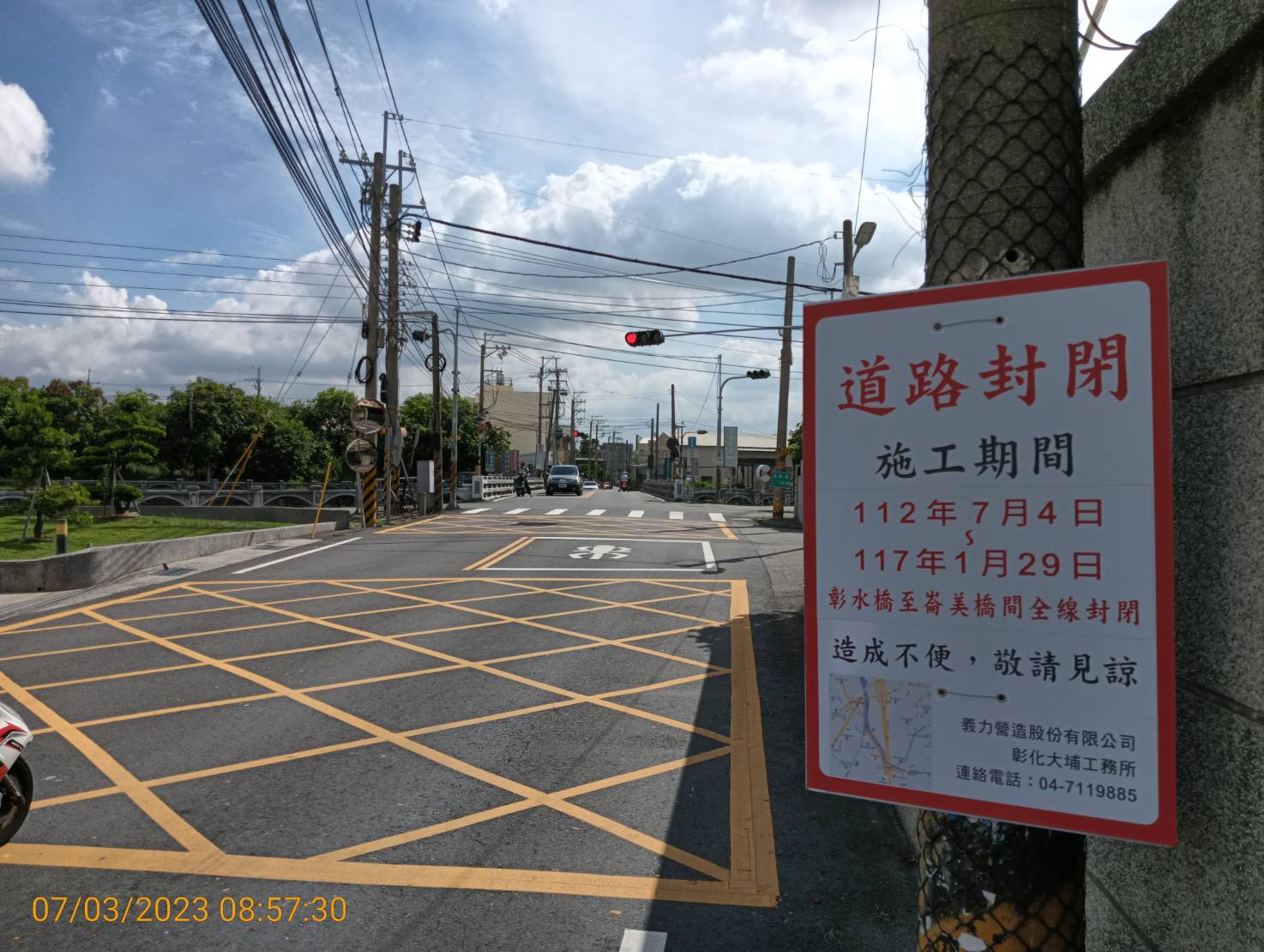 縣府說,本段道路封閉後,請用路人提前改以省道台1線-中央陸橋-崙美路-彰水路99巷-省道台19線之替代路線行駛,並遵守管制人員導引,以確保行車安全,施工期間,造成不便,敬請見諒!
