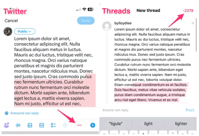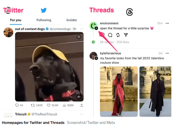 圖 9:Threads 和 Twitter 上發布串文的對比