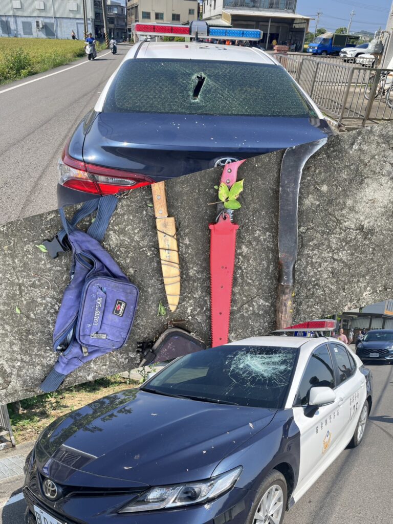 【記者蔡澤汝/苗栗報導】 苗栗警分局鶴岡派出所員警7月8日14時許,在台6線與縣道128線口執行勤務,發現由林姓男子(54歲)駕駛之普通重機車違反交通規則,鳴笛示意停車受檢,惟該駕駛人不服稽查持刀下車往巡邏車敲擊後騎車離開。