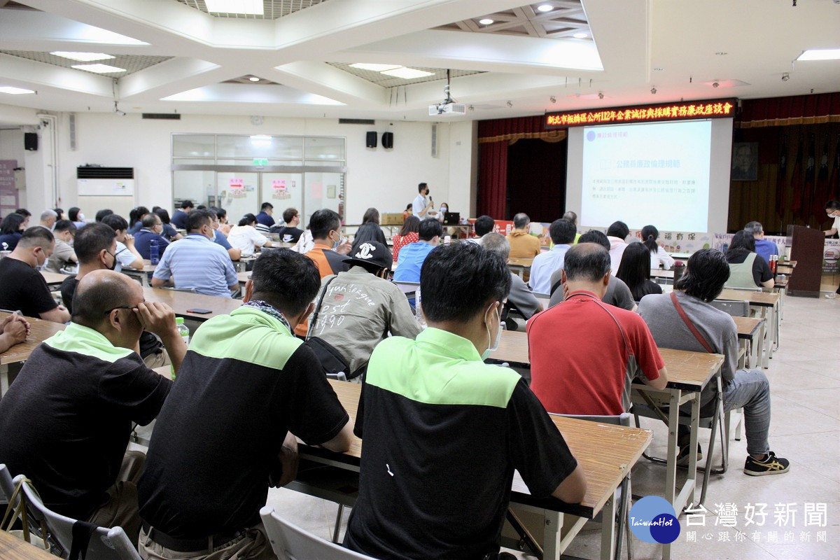 座談會現場另播映新北市政風處與工務局合作拍攝廉政微電影《友廉劇場》及反賄選宣導影片,籲請參與座談人員本於公私協力、攜手相廉,秉持便民、利民、愛民的理念,讓社會永續共好。