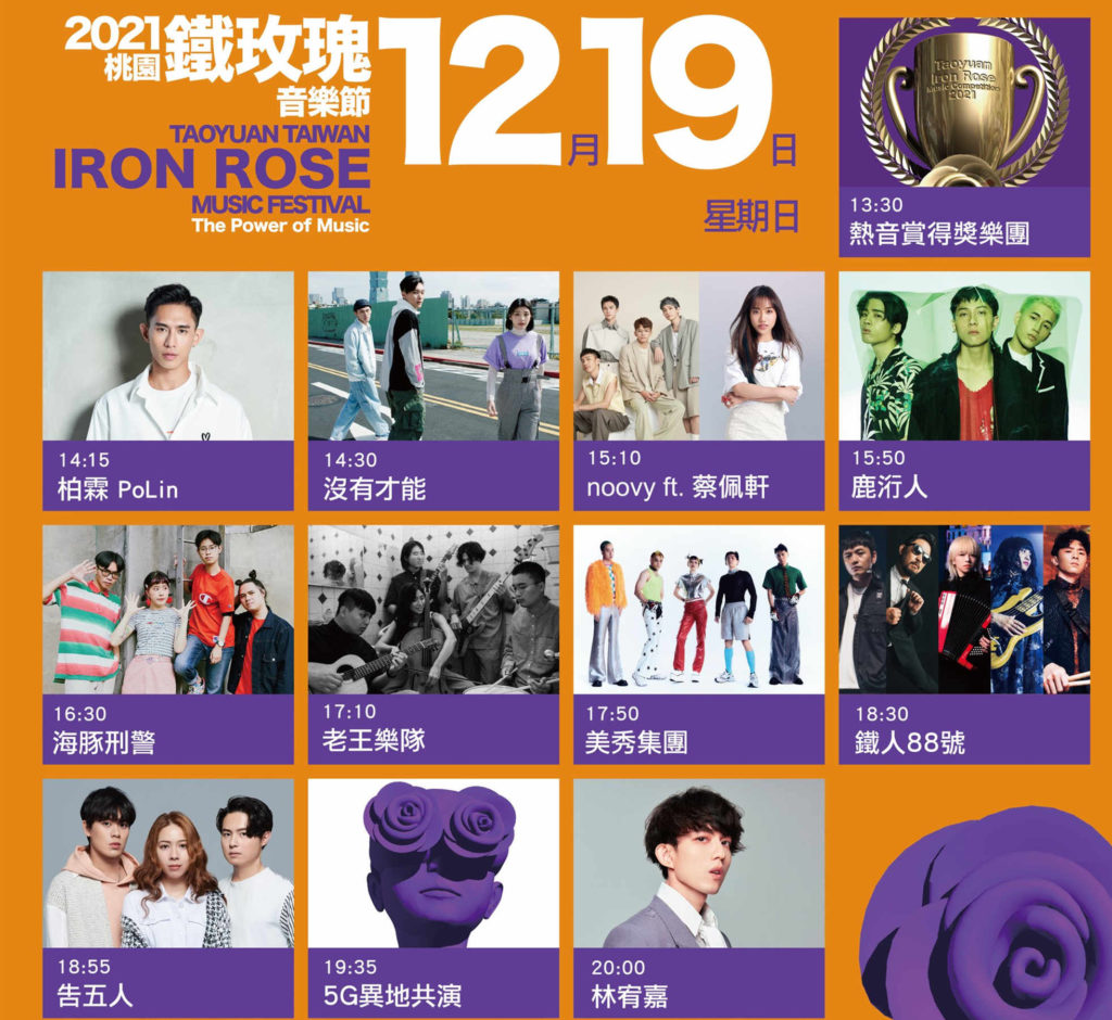 全台最大規模的音樂盛事,「鐵玫瑰音樂節」已成為最受矚目的大型音樂祭,今年以曲風作為主題「嘻哈電音」及「原創搖滾」,連續兩天集結當紅人氣歌手,邀請超過20組藝人輪番演出,超強演出陣容 GJ蔣卓嘉、IVAN艾文、Karencici、noovy ft. 蔡佩軒、ØZI、老王樂隊、告五人、沒有才能、屁孩Ryan ft.Allyson陳瑾緗 & Rgry & 水水Mizu98、林宥嘉、拍謝少年、美秀集團、柏霖PoLin、高級玩家、高爾宣、海豚刑警、婁峻碩、鹿洐人、葛西瓦、熊仔、蔡健雅,並特別推出一日限定樂團-鐵人88號,整合經典樂團菁英(八十八顆芭樂籽-阿強、滅火器-宇辰、大象體操-凱婷、美秀集團-鐘錡、毀容姐妹會-烏鴉),合作前所未有,最大的live音樂盛會,以不同曲風主題展現鐵玫瑰音樂節的獨特性格,徹底帶給大家絕對滿足的聽覺饗宴;周邊還有近百攤的文創市集,有吃有玩非常豐富,活動免費自由入場,粉絲們千萬不能錯過。