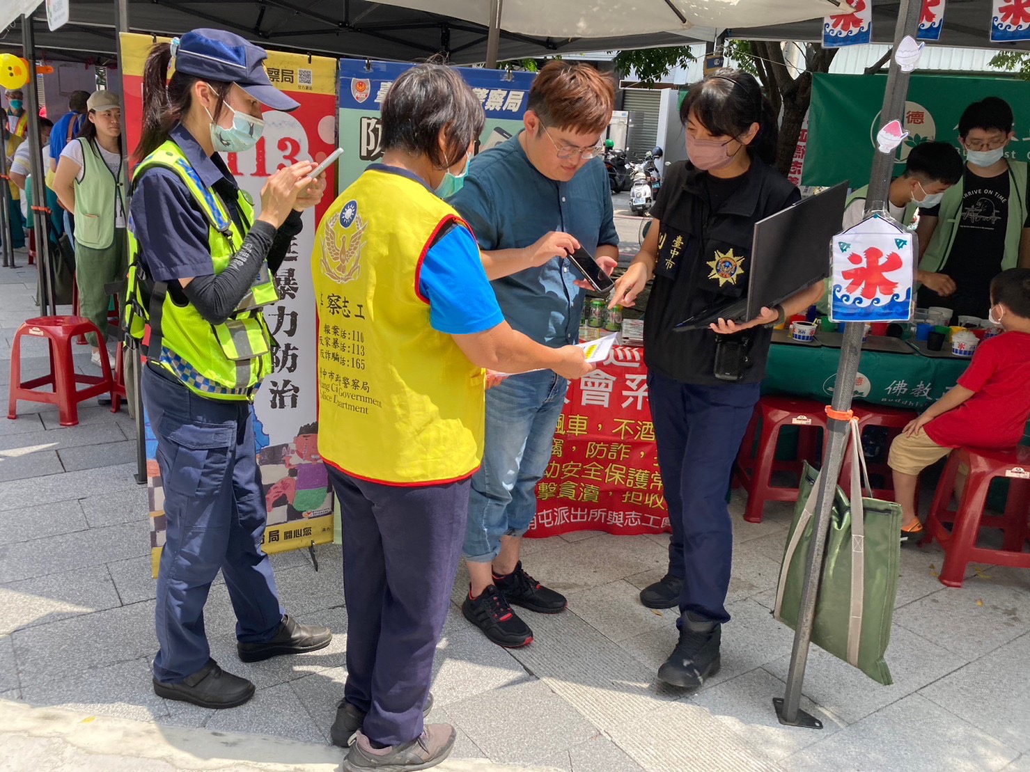 日前臺中市政府警察局第四分局防詐宣導團至南屯運動中心廣場與現場民眾進行識詐、防詐互動,宣導近期詐騙新手法,提供民眾防詐應對之道,並在現場教導民眾掃QR CORE加入第四分局粉絲團進入警政署與警察廣播電臺所拍攝「百工百業全民防詐宣導影片」,讓民眾可以藉由影片洞悉、認識「假網路購物、投資詐欺、解除分期付款詐騙、假愛情交友及假冒親友詐騙」等5種詐騙手法;為擴大防詐資訊覆蓋率,第四分局防詐宣導團採游擊宣導方式,只要有民眾參與的活動,就會看到宣導團出動,且隨行贈送精美宣導品,提高民眾「識詐」免疫力。