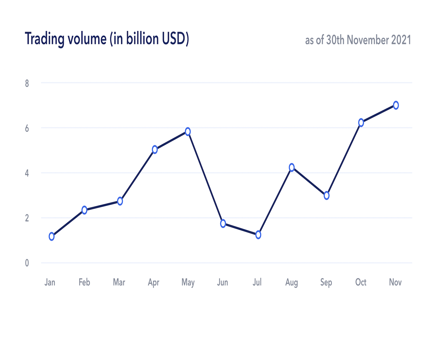 根據外媒報導,WazirX 16 日發布一份最新報告顯示,單就 2021 年一年的交易量超過 430 億美元,比 2020 年增長了 1,735%。