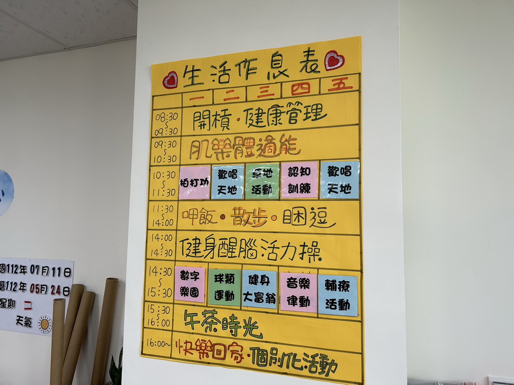 ▲永福村日照中心的服務理念就是要帶給每一位加入的長輩接受延緩老化的機能訓練與社交生活更豐富的人際互動。