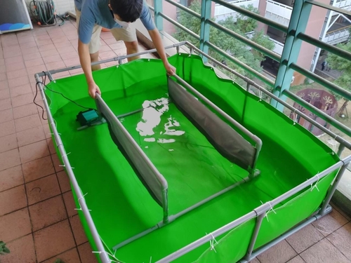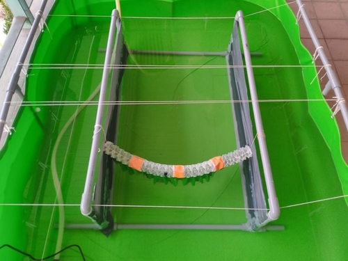 謝京霖說,目前採用的材料是實驗的模型,採用投影片的塑膠片,未來在正式模型上,需要的是抗腐蝕,且在太陽曝曬之下也不會分解的塑料。