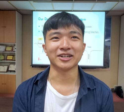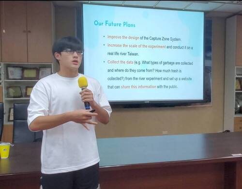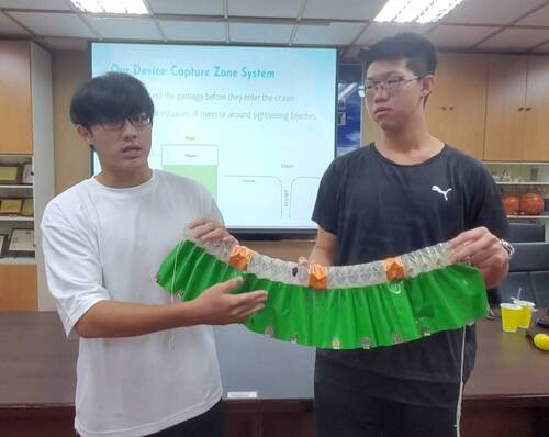 高二才加入團隊金時聿則說,「高一時與陳子戡在上自然科的自主學習課程,我們嚐試利用簡易的海洋垃圾回收的機器,但是成果很差,可行度也非常低。後來加入才發現,原來他們是利用攔截網的方式,去更有效率的攔截海洋垃圾,我發現在學習的過程中,單靠一個人要想出一個非常完整的是不可能的,加入團隊後,在各種討論中,擬訂出一個比較有效率的解決方案,是在高中非常值得參加的活動。」