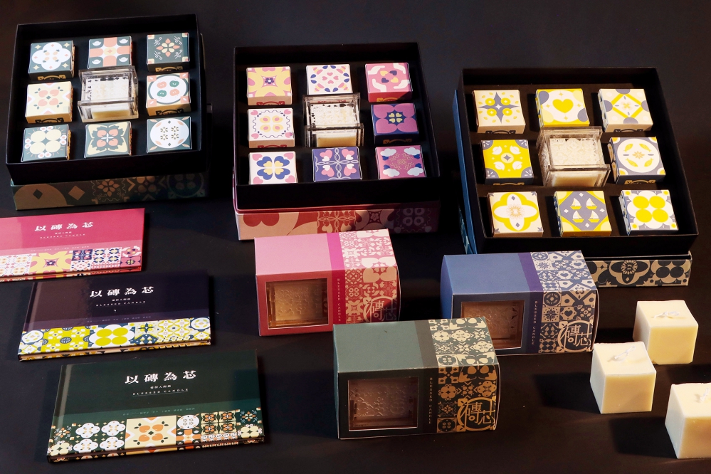 同樣獲得品牌設計類「紅點獎」的中國科技大學視傳系學生作品《磚芯》,係由蘇俊鴻、盧姿穎、李芩、丁霰敏、陳羿萍設計,考究台灣傳統花磚的花紋及構成形式,轉化為嶄新的蠟燭商品品牌,在莊元薰、王曉今、王建堯老師的引導下,讓台灣傳統之美以新的面貌繼續傳承。