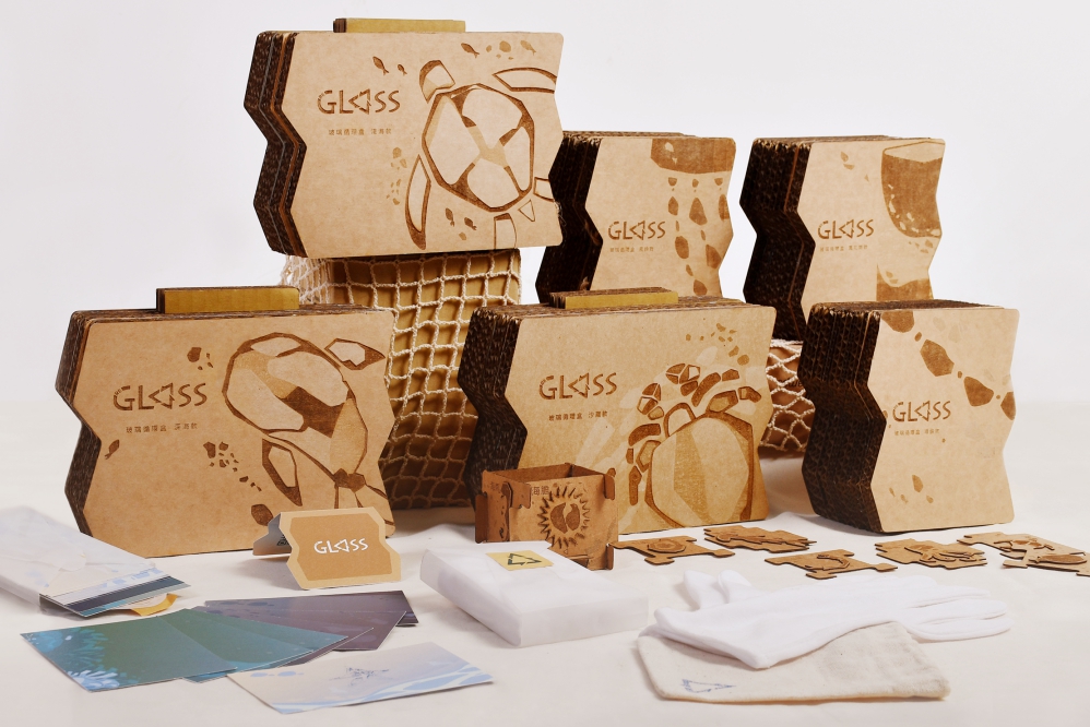 中國科技大學視傳系學生駱維翎、蕭欣佩、吳云琦等同學,以台灣沿岸淨灘為題,由魏碩廷、施盈廷、莊元薰、王曉今老師指導設計的《REGLASS》作品,係海玻璃回收利用產品組合,以可完全回收紙材及非油墨印刷的淺色雷射雕刻技術獲得包裝設計類「紅點獎」。