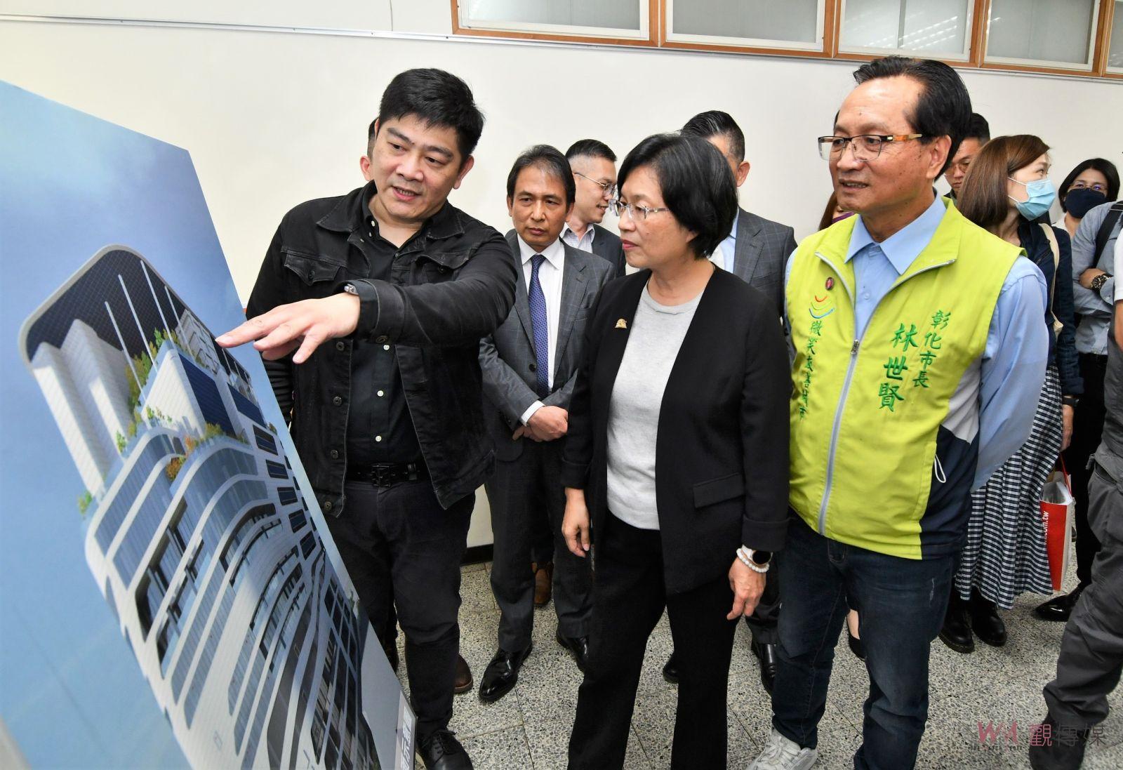 建設處指出,該案基地位址在彰化市旭光路上第二停車場(停五),基地面積7109平方公尺(約2150坪),建築總高度達84.7公尺,結構系統採鋼骨結構,為停車場共構百貨商場設計。汽車動線採單向進出,以長緩坡繞行建築外圍方式,約1圈距離即可抵達8F停車層,可減少車輛繞行而上的不適感。