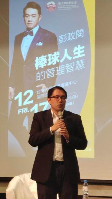 日前,國立臺灣大學進修推廣學院的PM學程學生會,特別舉辦了一場很有意義的活動~臺大PM名人講堂,特別邀請名人前中華職棒明星球員恰恰-彭政閔與會,也邀請了體育主播田鴻魁一起和臺大在職進修的菁英們面對面談談恰恰彭政閔【棒球人生的管理智慧】。