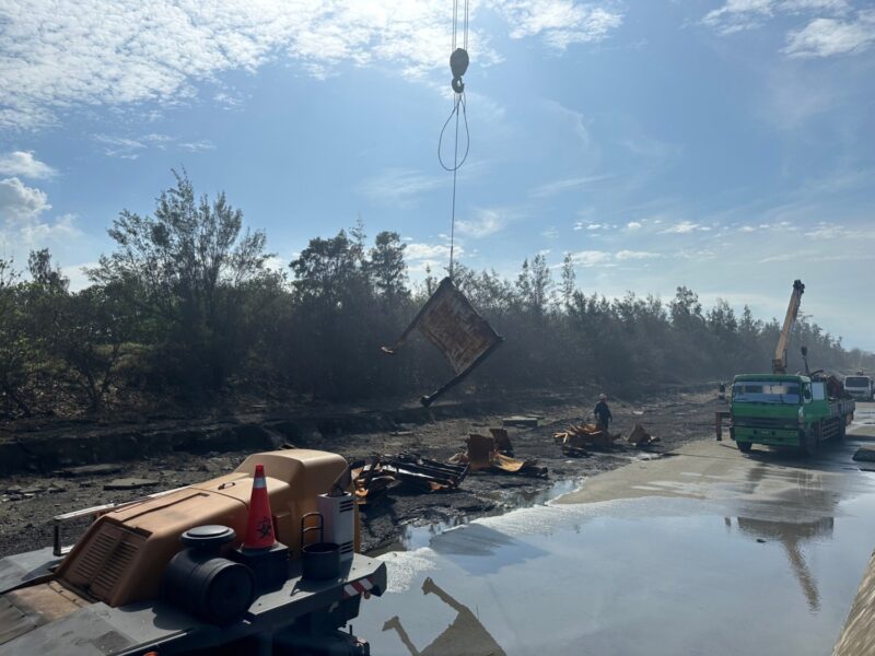 至於海面油污之監控及除污部分,依據今(12)日港務公司及海洋局之岸際觀測點、西子灣至南星灣沙灘及旗津海岸線之監視,均無發現油污情事。空域巡察部分,今(12)日海事工程公司派遣無人機至沉船處作業,無發現油污情形。海域巡視部分,海保署今(12)日上午6時50分調派「麥寮海洋號」發現沉船周邊有反光油膜帶,港務公司接獲通報後,派遣永通16號及華山號拖船完成除污作業並檢查及調整吸油棉索佈放情形。