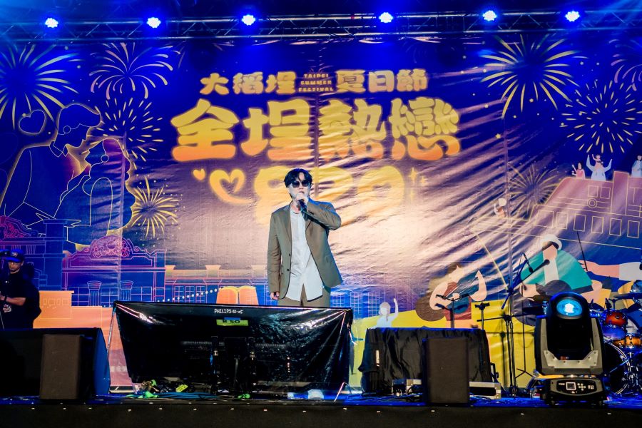▲大稻埕煙火秀活動閉幕特別加碼演唱會,眾多知名歌手接力演出。圖為歌手蕭煌奇。(圖/臺北市政府)