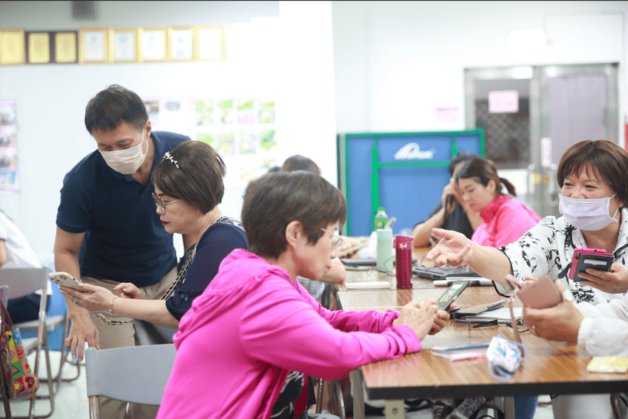 ▲三重里長人手一機 認真學習。(圖/新北市社會局提供)