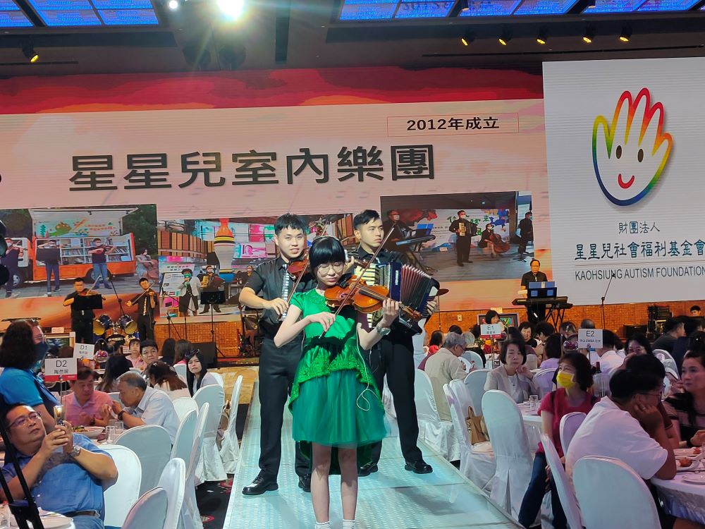 餐會中展現基金會長期服務的面向,一開場由大樹揚智發展中心的星兒太鼓表演「再出發」,及星星兒室內樂團、星星王子打擊樂圑,及自閉症鋼琴家李尚軒現場演奏,還邀請唐氏症挽面少年謝煒崴表演獨輪車;現場並有多幅創作義賣,包括自閉症知名畫家力政文、高進宇及曾博笙的陶藝作品共襄盛舉。